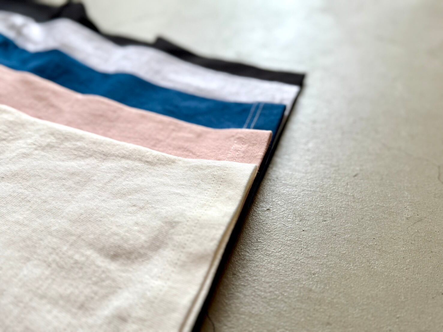 アメリカン製コットンを使ったユッタリ着てもらう半袖丈の無地Tee。