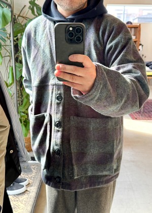 素材には起毛感のあるやや肉厚のコットンツイードチェックを採用。
