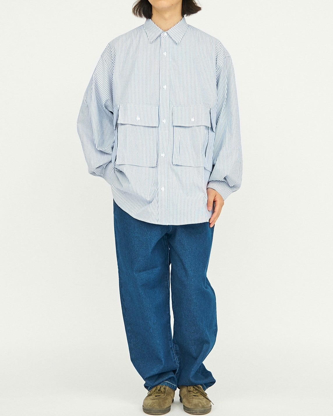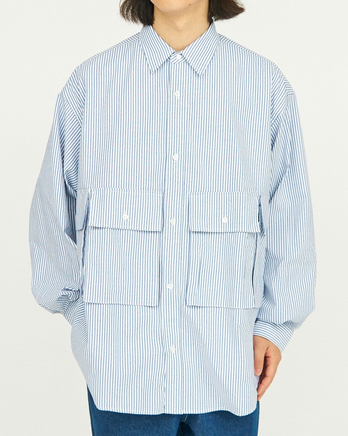 フロントにフラップポケットを4つ配置したシャツは、財布やスマートフォンなどの携帯に活躍することはもちろん、デザインとしても目を引くFreshServiceを代表するシャツ型です。
