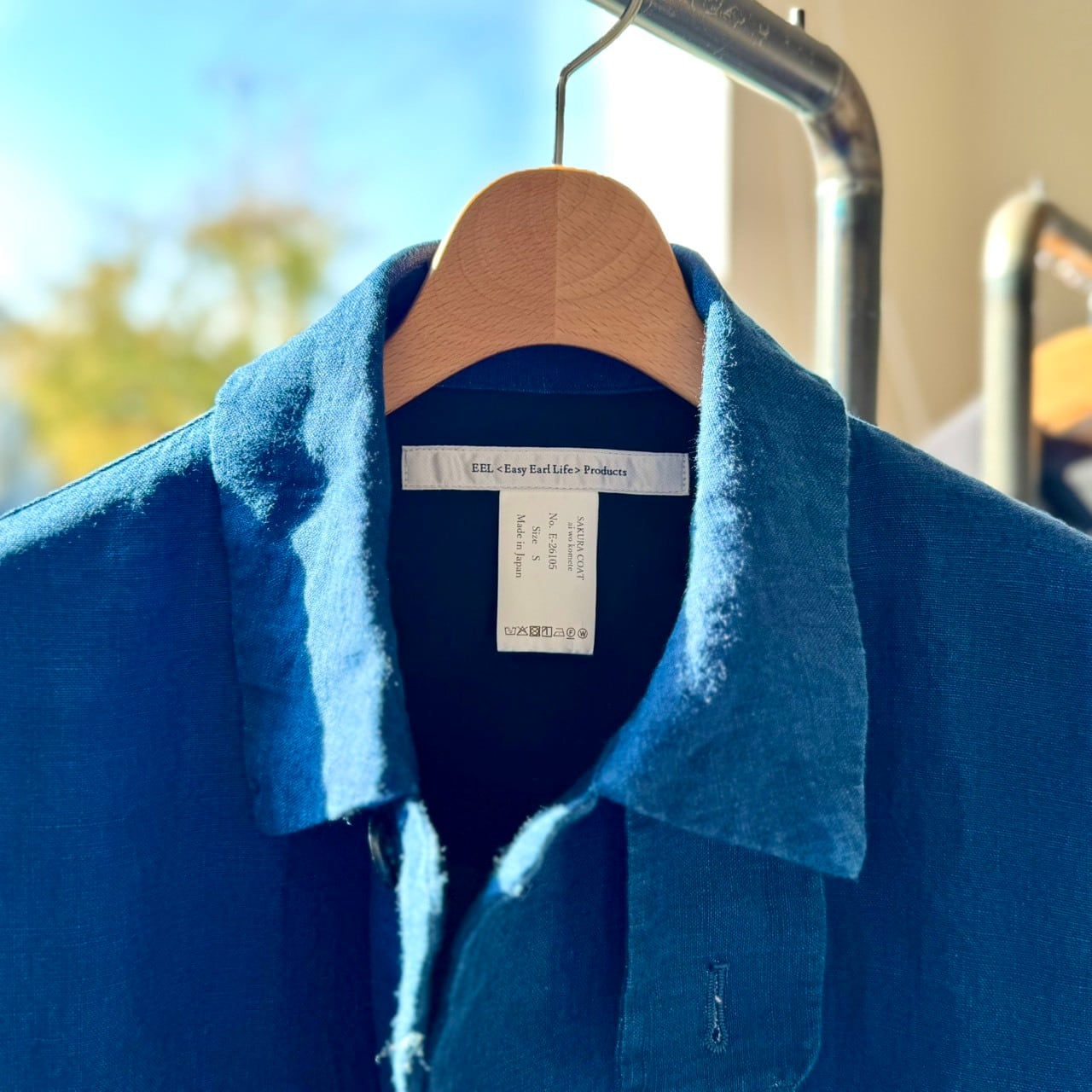 過去に発表していたインディゴ染めの″サクラコート 藍を込めて″をリネン100%本藍で作成。