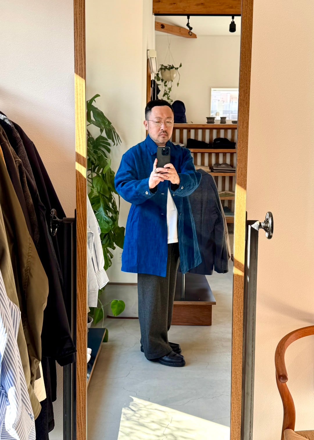本藍染めならではの奥行きある色合い、経年変化などお楽しみいただけるスペシャルな一着です。