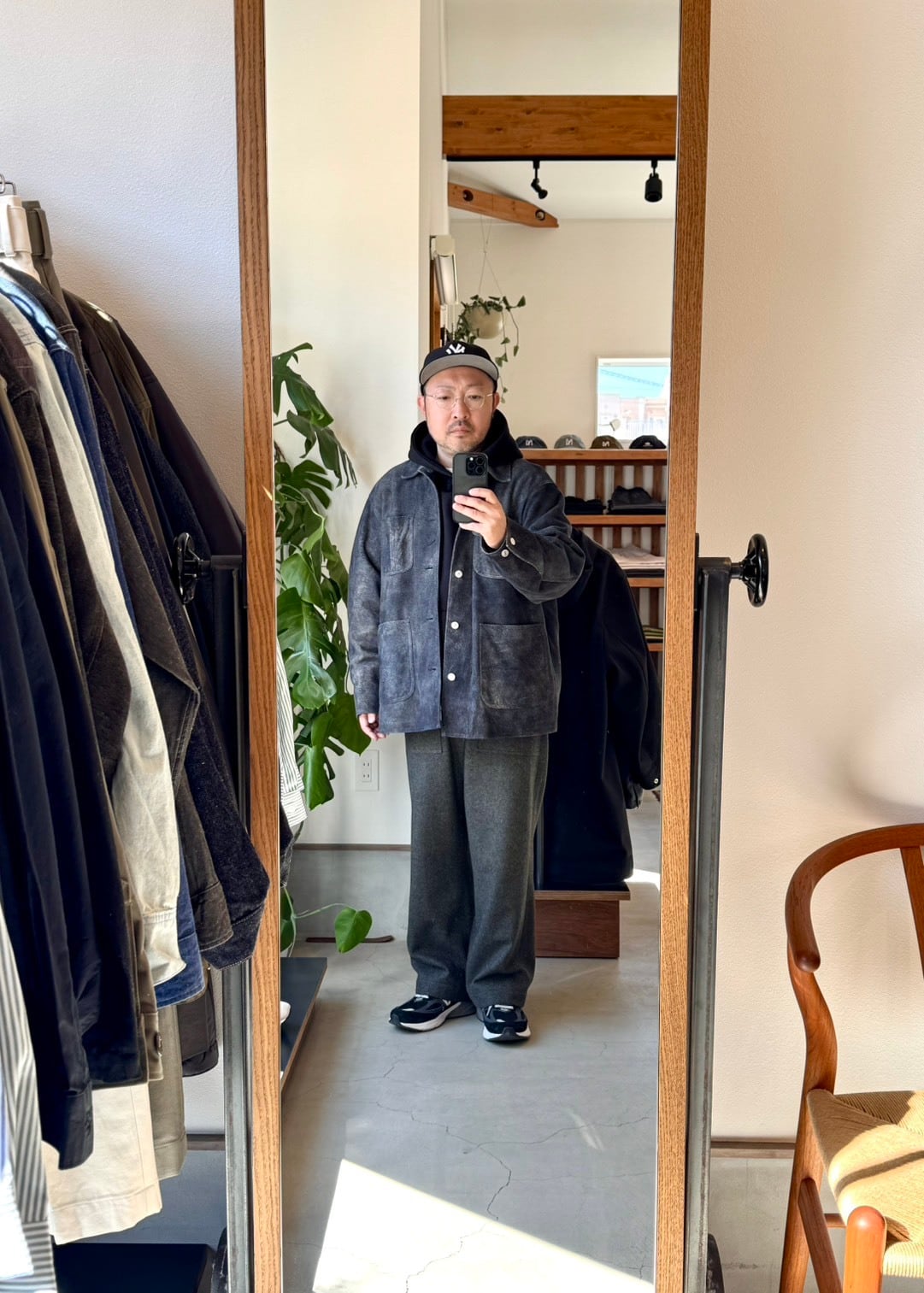 アメリカの老舗ストアブランドのカバーオールをモチーフに、ブランド独自のシルエットに落とし込んだアイテムは、親しみのあるデザインをベースにしながらも、レザー特有の存在感も併せ持った表情となりました。