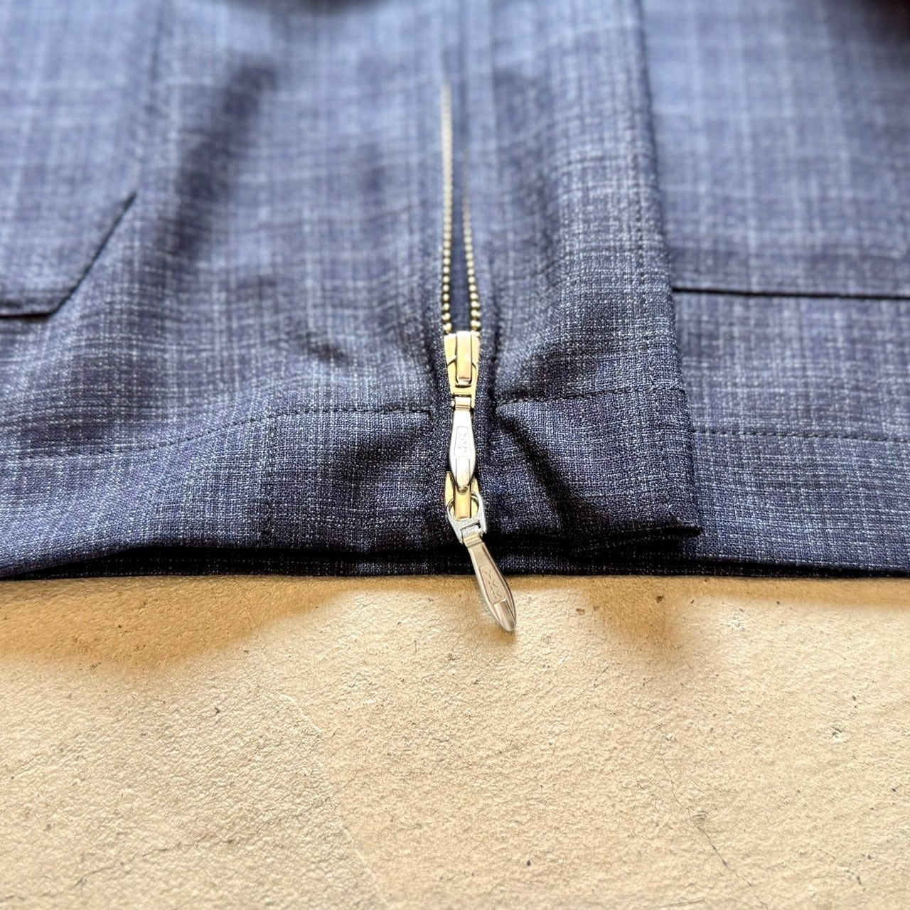 素材にはサマーウールとポリエステルを混紡した柔らかく適度に張り感がある生地を使用。