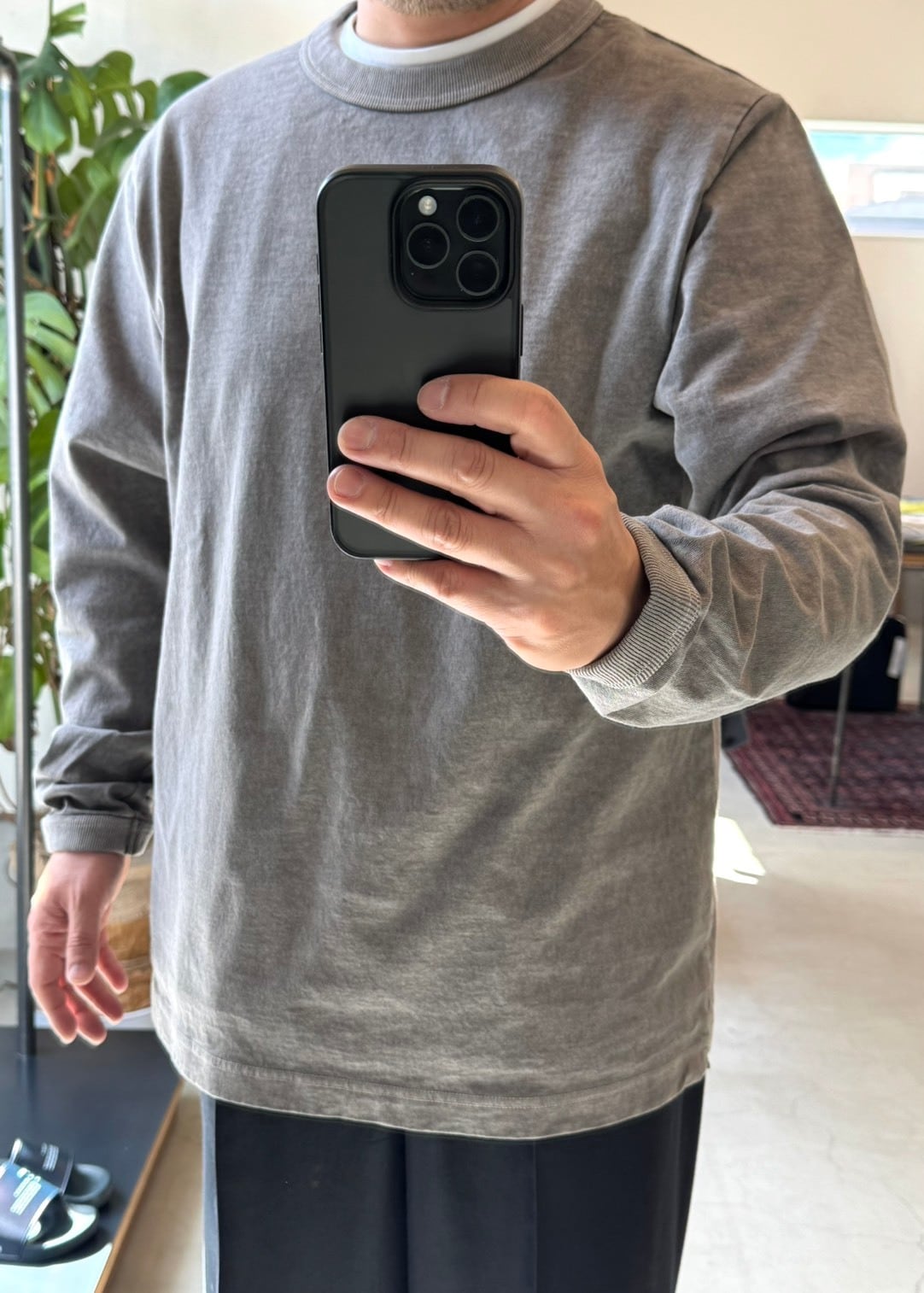 乾燥感がありザラッとした肌触りが特徴のアメリカ綿を使用し作製した長袖Tシャツです。