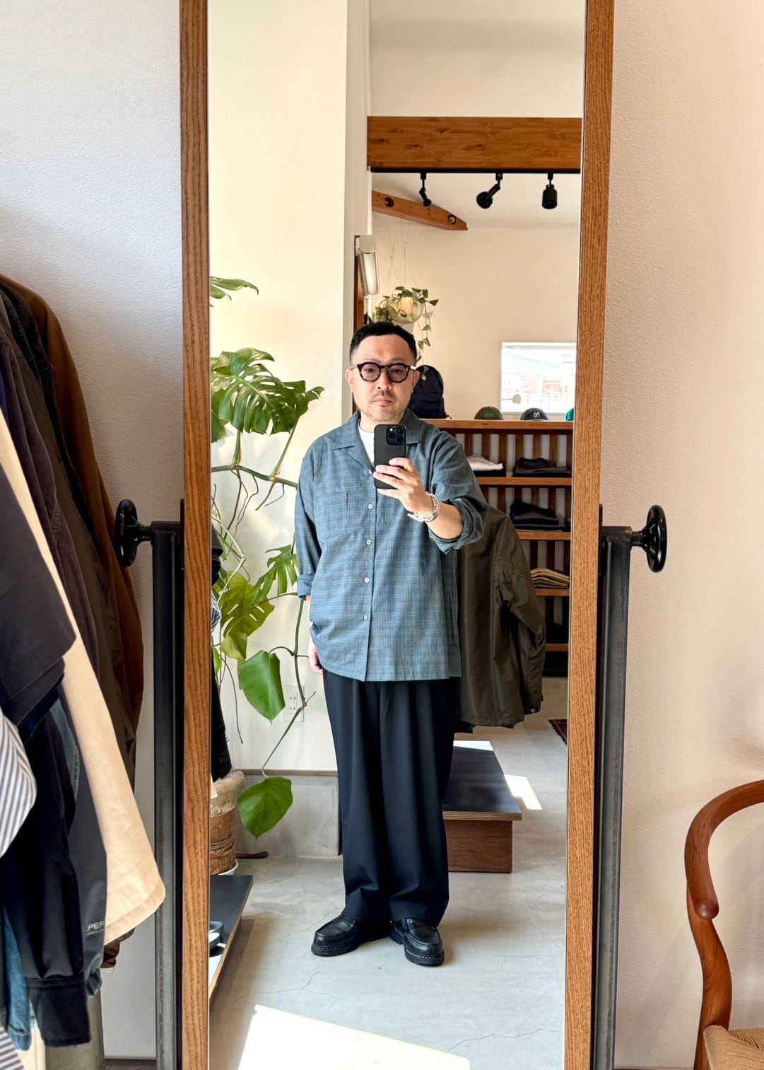 EEL Productsの代表的な開襟長袖シャツ。