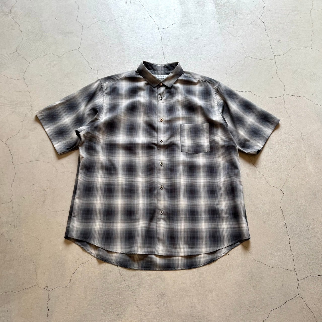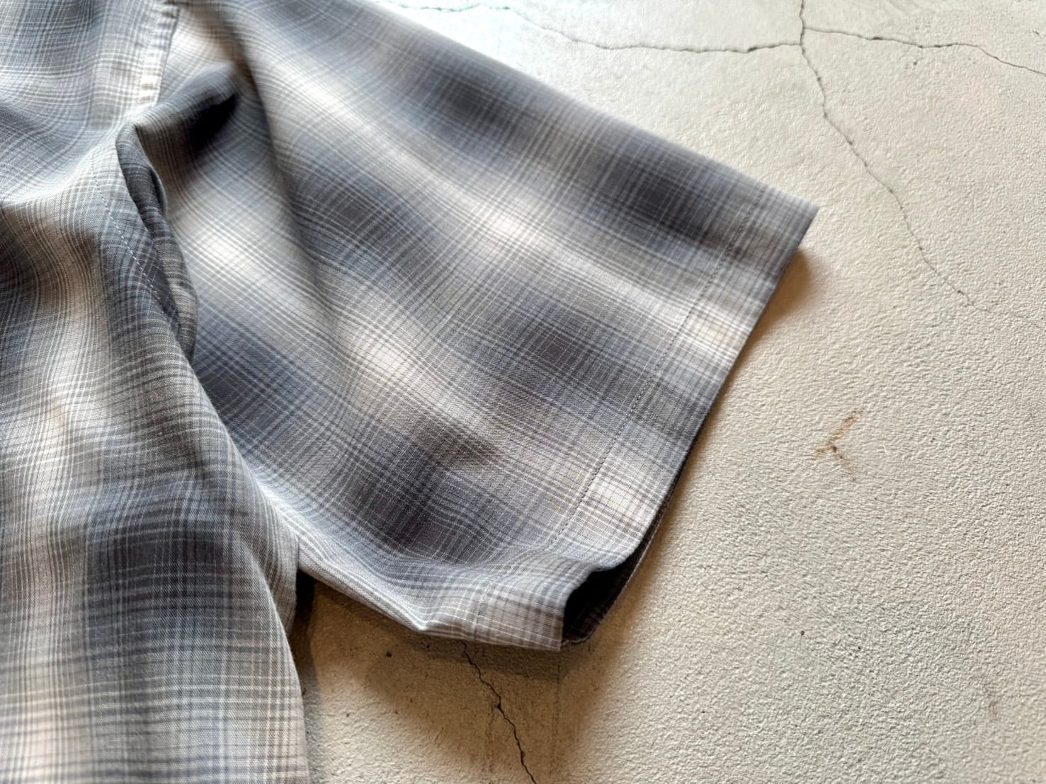 コンパクトな襟が特徴のオンブレチェック半袖シャツ。