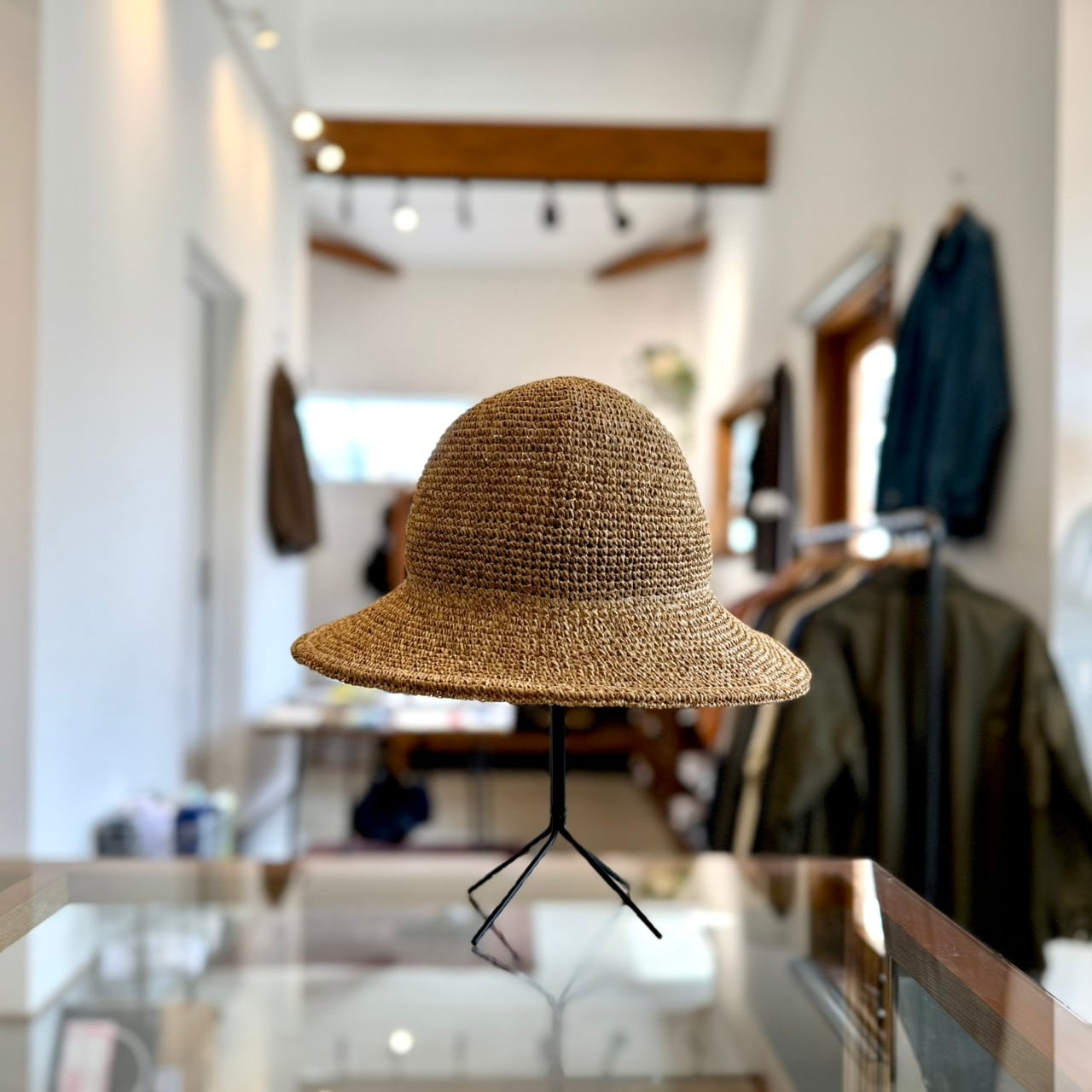 ペーパーかぎ編み素材の暑い季節にぴったりな丸頭ハット。
