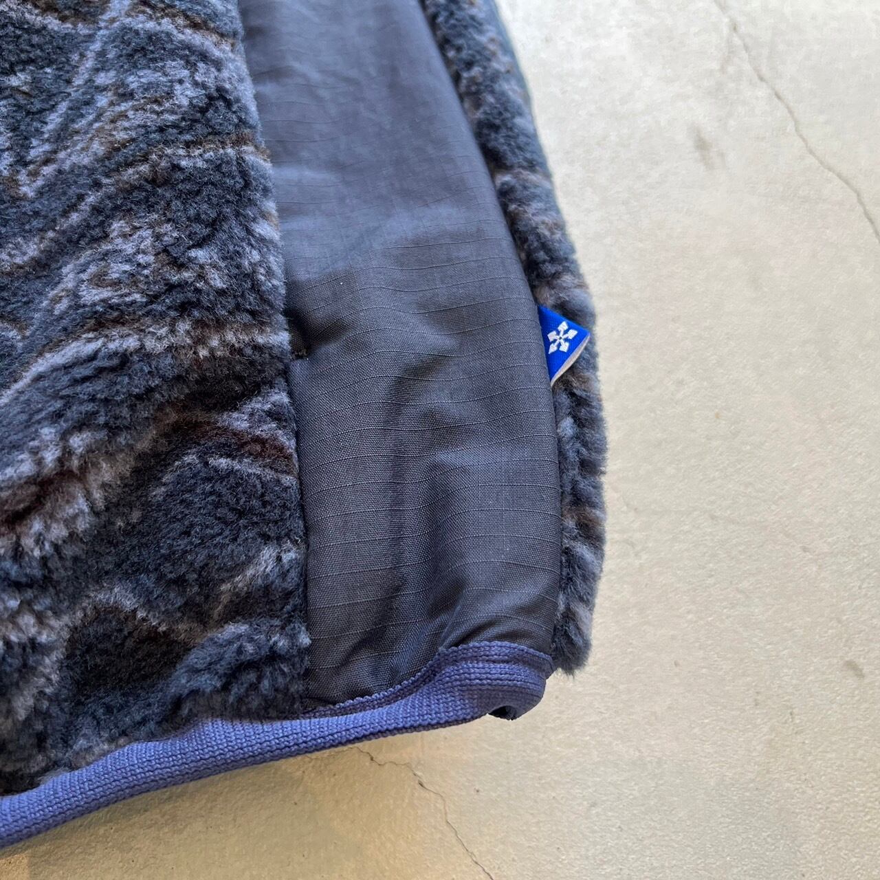 柔らかく暖かいジャガードボアを使ったオリジナル柄のリバーシブルジップアップベスト。
