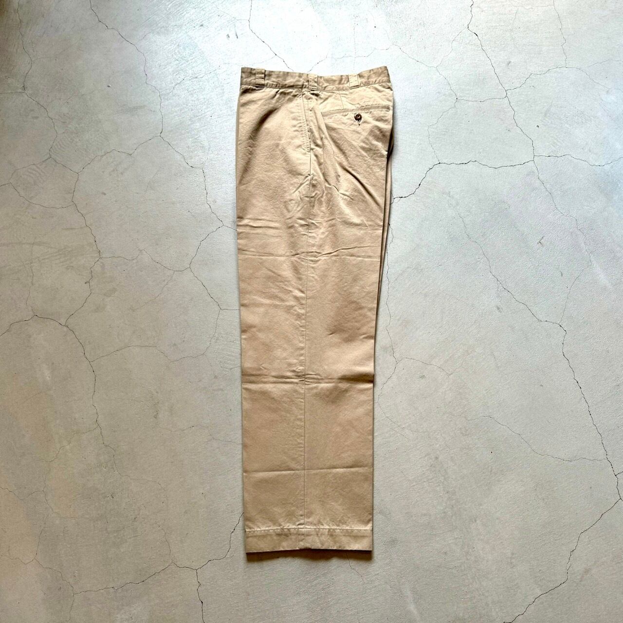 オリジナルの通年穿けるチノクロスを使用したトラウザースパンツ。
