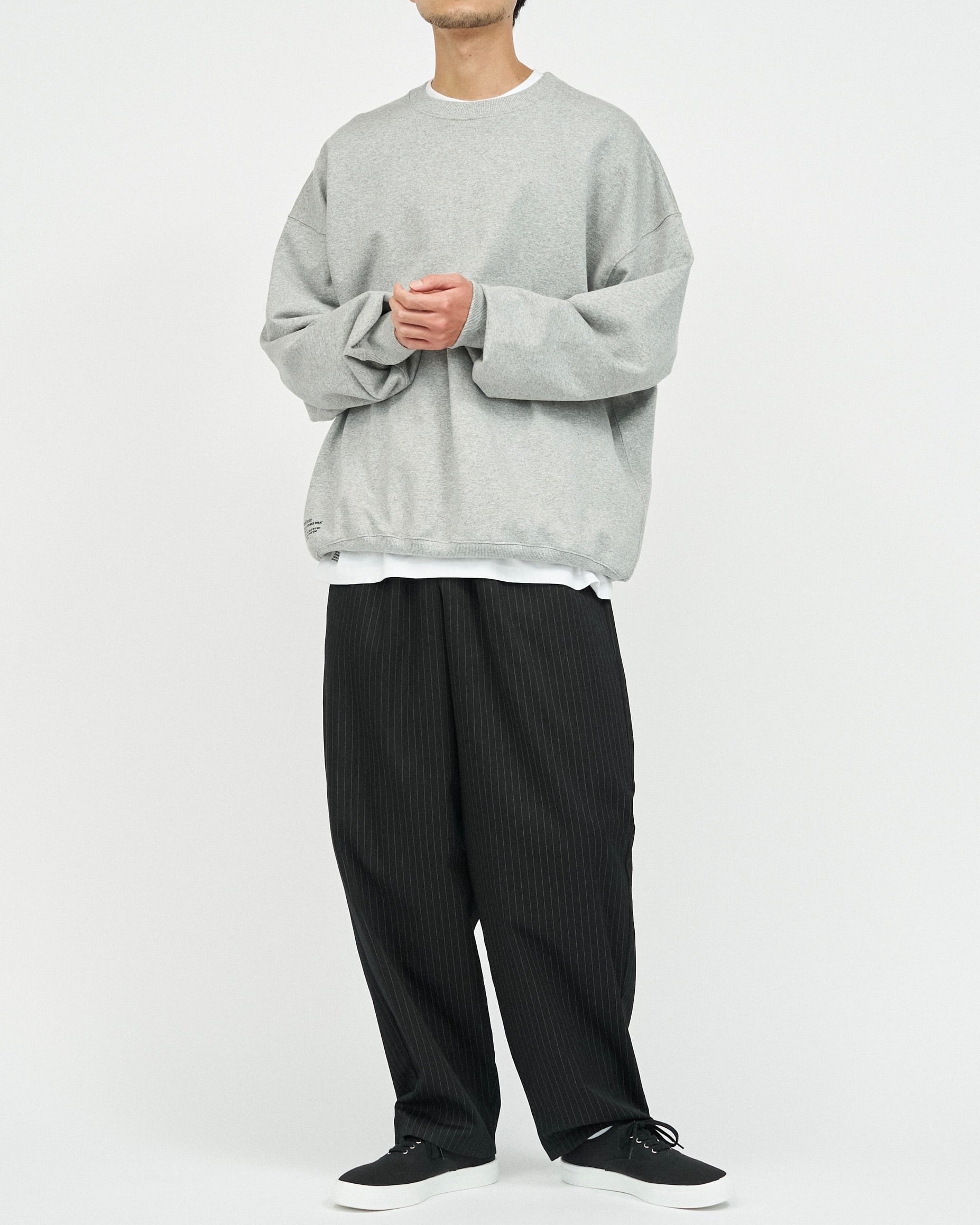 春先から秋冬と長いシーズンで活用出来る程良い厚みのクルーネックスウェット。